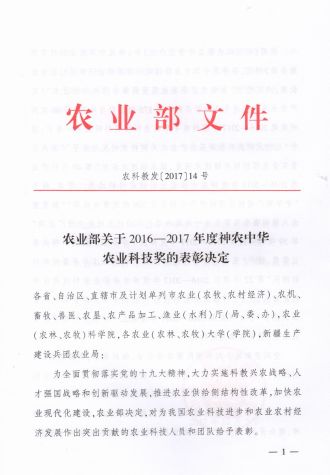 农业部关于2016-2017年度神农中华农业科技奖的表彰决定
